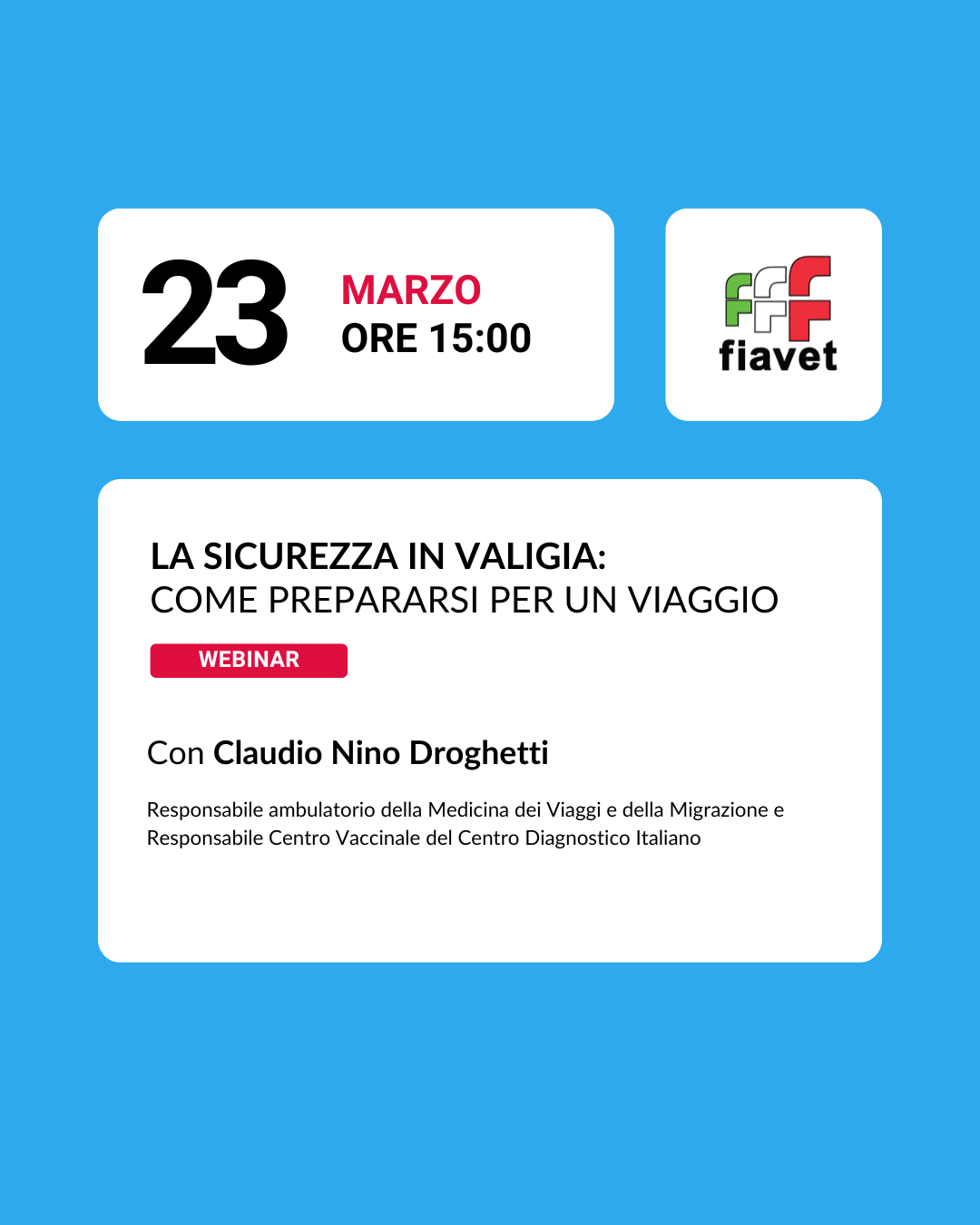 Webinar Fiavet 23 marzo 2026 ore 15:00 "La sicurezza in valigia: come prepararsi per un viaggio"